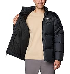 - A cozy solution to cold weather, this Columbia men’s puffer jacket delivers incredible warmth with lightweight, recycled synthetic insulation and a high collar. The water-resistant fabric keeps light rain out, while the zip-closed pockets stash your essentials safely. Columbia offers this jacket in multiple colors and sizes. Extended and tall sizing available. Regular fit.