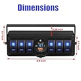 - Description: 6 gang switch panel is designed to control a variety of LED lights, including light bars, work lights, rear lights, fog lamps, driving lights, headlights, taillights, off-road lights, auxiliary lights, boat lights, and more. Our switch panel integrates with PD Type C and USB charger and Voltmeter making it perfect for a wide range of 12-24 VDC applications, such as cars, trucks, marine boats, yachts, trailers, RVs, caravans, campers, buses, UTV/ATVs, and more. With a DIY Sticker included, you can customize the switch panel by defining the name and assigning switches according to your needs, providing you with ultimate convenience and control. Package Includes: 1 x Multi-functional 6-gang switch panel 6 x Fixing screws 1 x DIY Sticker