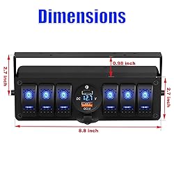 Weather-resistant Box: This switch box is designed to be waterproof, weatherproof, and splash-proof. Constructed from high-quality aluminum, it provides protection against short circuits and damage to the switches. All switches are pre-wired for simplified installation. Multifunctional Design: This switch box integrates 6 rocker switches rated at 12VDC, a PD Type C and USB charger, and an LED voltmeter. USB Charger and Voltmeter: This PD Type C and USB charger enables simultaneous charging of two devices at max speed. Compatible with all USB-powered devices, it’s 40% faster than traditional chargers. The built-in voltmeter displays current voltage readings, allowing easy monitoring of vehicle voltage status. Surface Mount: Comes with a surface mount enclosure, enabling it to be mounted on various parts of the car such as the dashboard, underneath the dashboard, middle console, or elsewhere. The bracket can be rotated 360 degrees, offering you more flexibility in choosing a mounting location. Universal for 12V & 24V Vehicles: Perfect for Car, Truck, Boat, RV, Caravan, Motorcycle, Bus, Trailer, Yacht, UTV, etc.