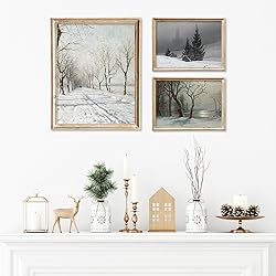 WHAT YOU WILL RECEIVE: The set includes 6 packs wall art prints, come into 3 sizes: 5 x 7inch(2pcs), 8 x 10inch(2pcs) and 9 x 12inch(2pcs). Different sizes give your multiple collaborative choices for wall decoration or photo frames.(The wall art prints are UNFRAMED.) WINTER COUNTRY SCENERY: Our wall art prints are all scenery photos of winter forest landscape from France country, take an antique oil painting style, vividly show a beautiful and rustic winter country scenery, they will fit perfectly and can become a part of an elegant Interior, create a winter and Christmas atmosphere. GOOD QUALITY: Our wall art prints are made of quality paper, thick and not easy to break, coated with a film which make them waterproof and tear resistant, which makes them can be used for a long time. PERFECT WALL DECORATION: Poster wall decor is a popular and elegant way to decorate a room, it is a good choice to hang on the wall of your sitting room, bedroom, college dormitory, dining room, simple decorations bring infinite art beauty. WONDERFUL CHOICE FOR GIFT: As the winter holiday and Christmas festive are coming, our wall art prints set can be a good choice for you. The wall are print set is very suitable for winter room decor.