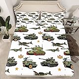 Manfei War Theme Sheet Set Full Size, Aircraft Tanks Bedding Set for Kids Boy Room Decor, Retro Army Green Airplane Tanks Bed Sheet Set 4pcs with Deep Pocket Fitted Sheet + Flat Sheet + 2 Pillowcases