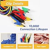 ALLIGATOR CLIPS ELECTRICAL: This test lead includes two alligator clips with pure copper contacts. Each clip features a maximum width of 10mm. The total length of the lead is 3.3 feet. The test lead can handle up to a 1000V voltage and a maximum current of 15A. ANIT SLIP DESIGN: The alligator clip is securely attached to the wire, and the rubber insulation layer ensures a firm grip during use. The spring on the crocodile clip is designed to be robust enough to withstand daily wear and tear without deformation. FLEXIBLE WIRE CABLE: Compared with other plastic coated cables, our silicone alligator clips have the advantage of being smooth, kink-free, and easily coiled for storage. In addition, these cables maintain a fair amount of flexibility in cold weather, allowing for more convenient usage. BUY WITH CONFIDENCE: Should you have any dissatisfaction, please do not hesitate to reach out to us and we will do our best to assist you within 24 hours. Our focus is on delivering top-notch products and services that prioritize customer satisfaction. WIDELY USED: The product is ideal for electrical testing and experimentation, such as breadboarding, prototyping, and troubleshooting, making it a versatile tool that is widely used in laboratories, shops, schools, homes, and industry.
