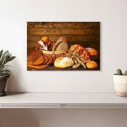 Bread Assortment- This wall decor and kitchen artwork features a russet and cream photographic image of a basket of fresh loaf of bread for breakfast. Our kitchen wall decorations can help you achieve the stunning and daring designer home you desire. Colorful Print- We print our vibrant pictures for kitchen walls using high-density pigments and latex inks to create high-definition canvas prints. Our single panel matte-finished kitchen canvas wall art will make your walls more visually appealing. Long-lasting Canvas- Our durable canvas wall art decor is made from a non-fading UV and humidity-resistant 330 GSM polyester canvas. This sleek and simple canvas wall art for the kitchen is created to last and only requires little to no maintenance. Easy to Install- All of our kitchen wall art canvas comes with a pre-assembled sawtooth hanger, so you won't need to assemble your own hanger attachment. This ready-to-hang printed canvas and kitchen wall art can be installed right out of the box. Sturdy Panel- The canvas of this printed picture for kitchen wall decoration is wrapped over wooden stretcher bars that sustain any frame deformities and damages. You can have this kitchen artwork in frame sizes that range from 12" x 8" to 74" x 48".