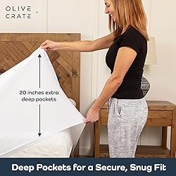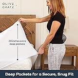 100% WATERPROOF PROTECTION YOU CAN TRUST: Life gets messy we know, Our waterproof mattress pad offers full protection against spills, sweat, and bedwetting accidents, keeping your mattress fresh and extending its lifespan. Whether you're managing potty training, incontinence, caring for a loved one, or sharing your bed with pets, this mattress protector offers the confidence you need for worry-free sleep. SOFTNESS WITH NOISELESS COMFORT: Crafted from 40% cooling viscose from bamboo and 60% recycled material, Olive + Crate waterproof mattress protector offers an ultra-soft, breathable layer that feels as good as it protects, with no crinkly or plasticky noises, even when you move or shift. TIRED OF WAKING UP SWEATY? Our cooling mattress protector is designed to keep you cool and dry all night. With moisture-wicking fibers that promote airflow and regulate heat, it’s the ideal choice too for hot sleepers, children, and elderly loved ones who need extra comfort and relief from night sweats. STAYS IN PLACE. SO YOU DON'T HAVE TO WORRY: Built with 20" extra deep pockets, our Queen size bed protector wraps snugly around thick and plush mattresses, including memory foam and hybrid styles mattress, for a fit that won’t shift, no matter how much you move. EASY CARE. HEALTHIER SLEEP. BUILT TO LAST: Toss it in the wash and you’re good to go, Olive + Crate bed protector waterproof cover is machine washable and dryer safe, Its hypoallergenic barrier helps prevent dust, pollen, and other allergens from accumulating, giving you a cleaner, healthier sleep environment night after night.