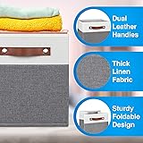 11 Inch Cube Storage Bin - 6 Pack - Linen Fabric 11x11 Cube Storage Bins for Bedroom, Living Room, Clothes and Toys; Foldable, Dual Leather Handles
