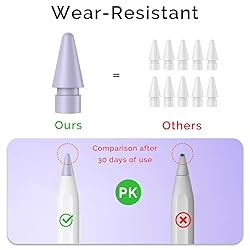 COMPATIBILITY - Compatible with Apple Pencil (1st generation), Apple Pencil (2nd generation), Apple Pencil (USB-C) and Apple Pencil Pro WEAR RESISTANT - Made from the same POM material as the original and built in upgraded nickel-plated metal nibs, more durable and long lasting than original tips PRECISION CONTROL - Unique replacement tips with the same high pressure sensitive as the original tips, no lag, flexible and accurate for writing comfort REPLACE EASILY - Just unscrew the old one and screw on new tips, installation is as simple as that PACKAGE INCLUDES - Contains 4 replacement tips to help your pencil last a long time or to share with your family and friend