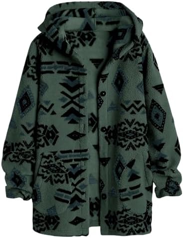 SELINK Womens Aztec Print Fleece Hoodie Jacket Button Down Shacket Casual Sherpa Coats Warm Outwear with Pockets