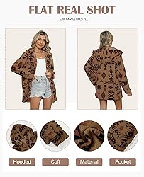 Material: Womens fleece jacket button down shacket casual sherpa is super warm, soft, skin-friendly, and comfortable to wear in fall or winter. Feature: Fleece hoodie jacket, western aztec print cardigan, button down closure, drop shoulder, long sleeve, 2 pockets, relaxed fit, warm outfits for women. Match: The aztec jackets that goes with everything, like: t-shirts, jeans, leggings, skirt, shorts, skinny pants, boots for a street look. Size: Small(US 4-6), Medium(US 8-10), Large(US 12-14), X-Large(US 16-18), XX-Large(US 18-20). Please refer to this Women's Fleece Jackets & Coats size chart before ordering. Occasion: Perfect for casual daily wear, street wear, office work, school, camping, party, out going, dating, travelling, holiday etc.