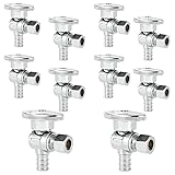 CONNECTION TYPE:1/2" pex inlet fit: PEX and PE-RT pipes, using copper crimp rings or stainless clamps. 3/8" OD compression outlet fit: stainless steel bellow and 3/8" pipes. SAFETY ASSURED:Made from lead-free brass and meets ASTM F1807, NSF/ANSI 61, and ASSE 1061 standards, ensuring clean and safe water use. VERSATILE CONTROL:Conveniently shut off water to specific fixtures during repairs without affecting the whole home's supply. LONG-LASTING:Made from durable brass, our PEX fittings withstand corrosion, rust, and temperatures up to 200℉, ensuring years of reliable, leak-free use. PACKAGE INCLUDE:10 pack lead-free brass 1/2 inch PEX x 3/8 inch OD compression angle valves.