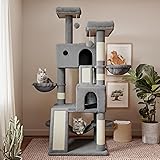 - SHA CERLIN 65in Larger Cat Tree Tower Condo for Indoor Cats, Multi-Level Furniture Activity Center with Wide Base/Cozy Plush Cat Perches/Baskets/Sisal Scratching Posts and Hammock/Grey