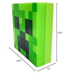 - Illuminate your nights with a touch of Minecraft magic with this Creeper Night Light. Designed to bring one of the most iconic mobs from the beloved game into your real-world space, this night light is a must-have for fans young and old. Measuring 10cm (4") square, this compact light is easy to place and perfect for smaller spaces. Its size makes it a subtle yet striking addition to any room, whether it's a bedroom, game room, or even a study area. The night light boasts the infamous Creeper face, rendered in authentic pixelated detail—almost as if it has jumped right out of the Minecraft universe and onto your wall. Installation is quick and simple, thanks to the adhesive pad that comes included with the night light. Just peel, stick, and you're ready to go. But what sets this Creeper Night Light apart is its intelligent auto on/off night sensor function. Once the sun sets, the sensor triggers the light to turn on, casting a comforting glow throughout your room. When daylight returns, the sensor will automatically turn off the light, saving you the trouble and conserving battery life. Speaking of batteries, powering this night light is easy; it requires just 3x AAA batteries (not included). Given its power-efficient LED technology and sensor functions, you can be sure that the batteries will last for a considerable time. The Creeper Night Light is more than just a decorative piece; it's a functional, interactive addition to your living space that keeps the Minecraft adventure going, even after you've turned off your console or computer. Ideal for gift-giving occasions like birthdays or holidays, this night light is a fantastic present for Minecraft enthusiasts. With this Creeper Night Light, you can transform any room into a cozy Minecraft haven where the game truly comes to life, even in the darkest hours.