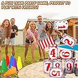 - Features: The bean bag toss game is bright and funny, which can be applied as a nice gift choice for friends and families, etc. The bean bag toss game for adults is interesting and attractive, adding more fun to your carnival parties, indoor or outdoor games, birthdays, school, garden, holiday, etc. Specifications: Material: canvas, tinplate, plastic, etc. Color: multicolored Size: Bean bags: approx. 4.3 x 2.4 inches Plastic cones: approx. 9 x 5 inches Carnival cans: approx. 4 x 2.6 inches Rings: approx. 5.7 inches Package includes: 3 x Bean bags 6 x Plastic cones 10 x Carnival cans 10 x Colorful rings (random colors) 1 x Net bag Notes: Manual measurement, please allow slight errors on size. The color may exist a slight difference due to different screen displays. Suitable for people over 12 years old