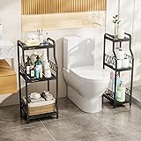 HapiRm Bathroom Shelf Unit Organizer - 3 Tier Expandable Narrow Shelf, Metal Free-Standing Shelves, Open Floor Rack Slim Storage Cabinet, Ideal for Bathroom, Laundry, Kitchen Organization (Black)