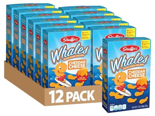 - WHALES Baked Cheddar Crackers: Enjoy a pack of 12, 7oz boxes filled with delightful cheese cracker snacks that are perfect for the whole family.