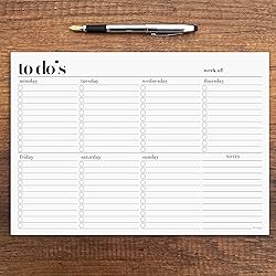 STAY ORGANIZED: Achieve your goals with Hadigu weekly planner notepad! With separate sections for each day, you'll be able to easily plan out your week ahead. KEEP TRACK OF YOUR PROGRESS: Hold yourself accountable with the weekly tasks and to do's. Jot down your weekly to do list, assign them to the related day and track it through the week. PRODUCTIVITY BOOSTER: Whether you're looking to improve your time management skills, stay on top of your to-do list, or just get more organized in general, our weekly planner notepad is the perfect tool for you! Use it on your desk, at home, or on-the-go to stay on top of your game. CONVENIENT FORMAT: Sheets are designed to be clear and easy-to-use. The hard back cardboard support provides a sturdy surface for writing. Hadigu weekly planner notepad measures 8,3 X 11,7 inches and is made with high-quality thick paper. PREMIUM EXTRA-WHITE PAPER: The paper is perfect for writing and does not bleed ink. The notepad is easy to use, whether you're at your desk or on the go, as it comes with a convenient tear-off feature and strong binding.