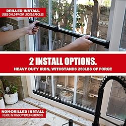 A Visual and Physical Deterrent: Keep your family safe with a window bar that is built to withstand 250 lbs of force and serve as a highly visual burglar deterrent. Constructed with high grade iron. For Vertical and Horizontal Windows: The sliding window lock can be easily installed in virtually any window in your home. It can be extended between 14.25" to 37" and be installed and removed in seconds. Child Proof Anti-Lift Lock: The sliding window security bar features a anti-lift child lock that offers you peace of mind knowing your child cannot disable the security bar. Keep Your Windows Open But Secure: Enjoy open air circulation with added security. Our window stopper allows you to keep you windows open while keeping intruders out even in a fixed position. 2 Easy Install Methods: Our window security lock comes with everything needed for an easy install. There are 2 install methods. 1) Drilled mounting bracket install for extra security. 2) Install directly in window rail without drilled mounting brackets.