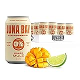 Luna Bay Zero Percent Tea Mocktail - Sparkling Tea Non-Alcoholic Beverage with Yerba Mate & Magnesium Glycinate, Vegan, Low Sugar, Non-GMO and Gluten Free - Mango Mule (12 Pack, 12 fl oz Cans)