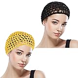 Crochet Hair Net:Crocheted hair wrap stretch to fit various hair types and hairstyles for thick or thin hair, short or long hair,curly or straight hair Mesh Hair Wrap:Weaving hair net is made of nylon with weave design,breathable and lightweight hair net for sleeping.Hand washing of braided weaving cap maintains long-lasting use Crochet Wrap Cap:Stretchy head cover fits most head circumference.Knit hats are suitable for women and girls, you can send head bands as practical festival gifts to your family Fishnet Cap Quantity:You will get 2 pieces adjustable knitted hats to match with different casual home wear clothes and replace in your daily life.2 colors black and yellow can be distinguished as night hat and shower caps Multifunctional Wig Making Caps:Women knitted cap hold your hair when taking shower and sleeping at night, preserving your hair from mess and maintaining hair smooth