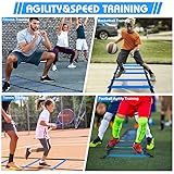 [Complete Sports Training Set] Footwork Drills, improve soccer skills, this is a comprehensive soccer training equipment! Each kit includes a 12 rung 6M agility ladder, 16 soccer cones, 4 steel stakes for added stability, and a carrying bag. [High-quality Material] Speed training ladder made of quality heavy duty nylon and PE material, high strong and durable, very wear-proof, long service life.All agility ladder can be slid up and down along the straps to change space between rungs to level up or down difficulty as you need, providing you with customized exercises and gradually toning up your footwork flexibility. [Speed Agility Training] Agility ladder and Cones can improve the ability of fast footwork. It practice the flexibility, balance, and coordination of the body. Agility Ladder is the most common training tool to improve athlete’s performance including agility, speed, explosiveness, balance, footwork, and cardiovascular health. [Your Soccer Trainer]The football training set with football cones is lightweight, portable, and even tangle-free, allowing you to easily set up and use it anywhere. Whether on the field, in the gym, or even in your own garden, you always have the perfect training tool at your fingertips. suitable for football training aids for adults. [Multifunction] Suitable for PE teachers, coaches, basketball players, soccer players, tennis players, track athletes, rugby players and athletes of all sorts. This agility ladder training equipment set is very helpful for sport training, soccer, basketball exercises, hockey, lacrosse, tennis, badminton, rugby. Can be used to friends or relatives who love sports.