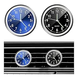 - Specifications: Quantity: 2 PCSColor: Blue+Golden/ Blue+White/ Red+Black/ Red+White/ White+Black/ Blue+Black/ Golden+White/ Golden+Black/ Black+Green/ Black+BlackMaterial: AlloyWeight: 58 gSize: 1.57 × 0.31 inchesFeature: Mini, Portable, LuminousApplicability: Universal FitWhy need a mini car watch?-Luminous clock points and digital display give a clear view even in the dark night.-Convenient to grasp time at a glance and arrange your schedule reasonably while driving.-It is a practical accessorie for daily life, can be pasted most places you want, bringing you more convenience.-It is a great choice for gifts to family or friends.