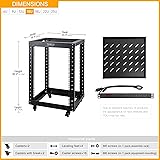 WHAT YOU WILL GET: This 19" 15u server rack set includes a standard 15u portable network rack, all relevant assembly screws & nuts, leveling feet and casters; one piece of high quality vented universal rack shelf; and a qualified PDU for daily usage SIZE: Width 19.7" (500 mm), Depth 21.7" (550 mm), Height 33.2"(842.5 mm with casters). Also other heights 6U, 9U, 12U, 18U, 22U, 25U are available. RIVECO portable rolling network rack series is versatile for 19" standard equipment and devices STURDY: 4-post construction, heavy-duty, SPCC cold-rolled steel can safely support up to 600 lbs of rack mounting equipment with leveling feet, and 500 lbs with the casters. The black RAL9005 powder coat finish makes this 15u home rack resistant to scratching and rusting VERSATILE: This great rack series is ideal for electronics & equipment like AV, TV, NAS, DATA, server, internet router, amplifier, hard recorder, computer, X-box INSTALLATION: Easy assembly according to instruction. Floor standing and movable with brake casters or leveling feet. The base is also pre-drilled for securely fastening the small home server rack to the ground if needed, providing you with additional stability to ensure your networking game and entertainment moments
