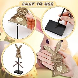 What You Will Get: there are 3 different styles and different sizes of Easter wood sign in the package; Each decor has a base of different lengths, allowing the wooden blocks to stand on their own, so you can place them where you want Quality Material: our Easter bunny sign set is made of wood material, which is sturdy and reliable, with a smooth surface, no burrs, not easy to deform or break, and can accompany you for a long time, adding charm to your home Classic Easter Outlook: these Easter bunny decorations are designed in the shape of bunny, printed with the heart pattern at the tail, creating a strong Easter atmosphere, suitable as party decorations or daily decorations Detachable Design: the wooden signs have a detachable design; Just insert the round rod into the round hole of the base to achieve the standing effect; The detachable design saves space and is convenient for you to store for the next use Wide Applications: these wooden decoration is fun and cute, which can be easily displayed on multitiered trays, tables, bookshelves, fireplaces, or other places you like; You can use them to decorate your bedroom, dormitory, living room, kitchen, making your house warm and attractive