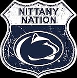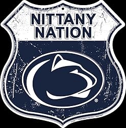- Hangtime Penn State University - Penn State Nittany Lions 12 x 12 inch Die Cut Route Sign Two holes for easy mounting. Baked on finish with embossed detail Brand new in factory shrink wrap. Proudly made in the USA.