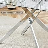Glass Dining Table for 4 People, 51.2 Inches Rectangular Glass Kitchen Table with Silver Steel Legs, Modern Dining Room Table for Dinner Kitchen Dining Room