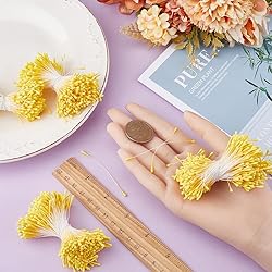 [1600Pcs Flower Stamen]: Come with 4 bundles of flower stamens, each bundle 400pcs, approx 5.9cm/ 2.3 inch long. [Fibre Materials]: Our hand-made pearl flower stamens are made of high-quality fibre, which are tasteless, healthy. They have high toughness and durability, are not easily broken, and do not fade or dye. Use our flower stamens to make it easy for you to have a vivid flower! [Easy to Use]: Double heads handmade flower is soft and comfortable, which can be bent into the shape you want. They can be kept for a long time, and you don't have to worry about losing your unique creativity as time goes by. [Double Heads Design]: Our artificial flower stamens adopt a vivid design that is close to the natural form of plants-their tips. They have beautiful, smooth, fashionable pearl luster and bright colors, making your handmade works look more advanced, vivid and attractive. In addition, they are double-ended design, with two vivid stamens, which makes your handicraft production more handy. [Scope of Application]: This artificial stamen is mainly used to make handmade flowers, such as head flowers and corsage, but also can be made into handmade small flowers, such as stars or small fruit. With these double heads stamens, our crafts can be more vivid and beautiful.