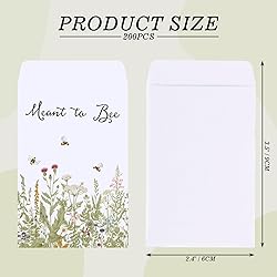 WHAT YOU WILL GET: 200 pack wedding favor packets are included in the package, sufficient to meet your needs for storage and party favors. SELF-ADHESIVE: The sealing part of the packets will become sticky when get wet, no glue or stickers needed, which are very easy to use. DURABLE MATERIAL & SIZE: Made of good quality paper, with aesthetic wildflowers and bees printings against white background, and the words of Meant to Bee, exquisite and classy, full of retro feelings, non-fading and can be kept for a long time. Each packet is 9 x 6cm/3.5 x 2.4 inch. Notice: The size is measured manually, please allow for errors, and the color of the pattern is based on the actual product. FULL OF FUN: You can DIY the packets, write down your wedding day and your names on the blank part of the packet, and give them to your friends and family with other gifts. MULTI-FUNCTIONAL: These packets are quite suitable for wedding, baby shower, storing the of sunflowers and other flowers, or storing small items, such as coins, stamps pins, etc..