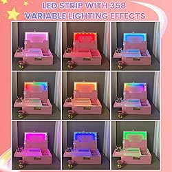 Usoway Bamboo Storage Box With Colored LED Lights - 358 Kinds Cool Light Effects, Premium Decorative Wooden Box With Combination Lock, Storage Box Set With Sliding Tray and Accessories (pink)