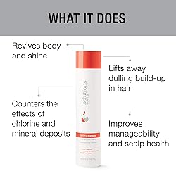 - This shampoo is designed to lift away product build-up in the hair and counter the effects of chlorine and mineral deposits. Especially helpful for those who tend to use styling aids regularly.