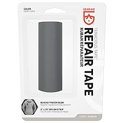 Fix rips and holes fast with an ultra-strong, peel-and-stick repair tape that requires no heat or sewing, ideal for use on tents, tarps, jackets, vinyl furniture, and other synthetic materials Apply Tenacious Tape to almost anything with its aggressive adhesive that bonds permanently to nylon, mesh, vinyl, rubber and plastic; not recommended for seams, denim, cotton, or natural fabrics Make a washable repair sealed with this repair tape featuring a waterproof coating that won’t peel off over time; available in 3”x20” strip Use the nylon fabric (black, red, yellow, OD green and coyote), ripstop fabric (sage green and off-white), and clear vinyl for a nearly invisible repair Packaging may vary