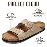 Project Cloud 100% Genuine Leather Flat Sandals For Women 2026 Cork Footbed Womens Sandals with Memory Foam and arch support Vacation Essentials Slides for Women Footwear (Venita)