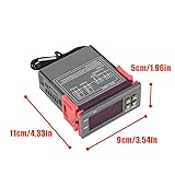 - Features: 1.Incubator thermostat can easily switch between cool and heat modes for versatile temperature control 2.This digital thermostat for hatching precisely manage temperature by configuring the temperature set value and the difference value 3.This digital thermostat for aquarium Includes a temperature calibration function for accurate temperature adjustments 4.This digital thermostat for chicken incubator features refrigerating control output delay protection to enhance the efficiency of cooling operations 5.The digital temperature controller for homebrewing is equipped with an alarm system to alert users when the temperature exceeds the set limit or in the event of a sensor error 6.This thermostat with temperature calibrating function is perfect for various applications, including use in aquariums, terrariums, zoos, paludariums, and chicken incubators Specification: Model: STC-1000 Voltage: 110-220VAC±10%, 50Hz/60Hz Current: 10A Relay Contact Rating: 10A / 250VAC Temperature Measuring Range: -50℃~99℃ Resolution: 0.1℃ Accuracy: ±1℃(-50℃~70℃) Sensor Error Delay: 1 minute Power Consumption: ≤3W Sensor: NTC sensor (1pc) Relay Contact Capacity: Cool (10A/250VAC); Heat (10A/250VAC) Ambient Temperature: 0℃~60℃ Storage Temperature: -30℃~75℃ Ambient Relative Humidity: 20~85%(No condensate) Sensor Length: 1m / 39.4inch (include the probe) Size: 8.5 x 7.5cm / 3.3 x 3in Weight: 110g / 3.9oz Package List: 1 x Temperature Controller with Sensor