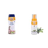 DID YOU KNOW DOG SKIN DIFFERS FROM HUMAN'S - Dogs' skin is less acidic than human skin, so human shampoos destroy a dog's skin protective barrier, leaving your pet vulnerable to itchy flaking ODOR CONTROL WITH BAKING SODA - This dog deodorizer shampoo includes the signature Arm and Hammer baking soda to naturally control and remove dog odors NATURAL DOG SHAMPOO - The natural ingredients in this dog shampoo - cucumber mint & baking soda - effectively work together to tackle odors and keep your pet's coat clean while moisturizing dog dry skin WATERLESS DOG SHAMPOO — The Arm & Hammer Ultra Fresh No-Rinse Deodorizing waterless dog shampoo is an easy way to keep your dog clean and fresh without a full bath. Great for in between baths to help your dog look, feel, and smell their best DEODORIZING DOG SHAMPOO — Great for combatting dog odors, this waterless no rinse dog shampoo is the best dog shampoo for odor. Use this dry dog shampoo for smelly dogs to tackle pet odors INFUSED WITH BAKING SODA — With the signature Arm & Hammer baking soda as a premium ingredient, this waterless no rinse dog shampoo naturally takes care of pet odors