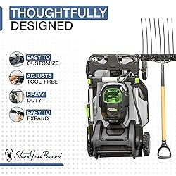 - StoreYourBoard’s Garage Tool Organizer Wall Mount is a heavy-duty storage solution designed to keep your garage, shed, or utility space organized and clutter-free. This 64" modular wall organizer is built from solid, powder-coated steel to support up to 600 lbs of garden tools, yard tools, and cleaning essentials. Perfect as a broom holder wall mount, shovel holder, or garden rake rack, it securely stores everything from mops and brooms to power tools and outdoor equipment. The expandable design allows you to connect multiple racks, creating a customized garage storage system that fits your needs. Easy to install into standard wall studs, this garage wall organizer includes all hardware and brackets for a quick setup. Its versatile design makes it ideal for sheds & outdoor storage, garage shelving wall systems, or as a tool storage organizer in workshops. Whether you need a yard tool organizer for garage use, a broom and mop holder for everyday cleaning, or a garden tool organizer for seasonal storage, this wall rack delivers reliable performance. Proudly engineered by StoreYourBoard, a USA-based brand trusted since 2009 for innovative garage storage and organization products, this tool rack is built to last and backed by expert support.
