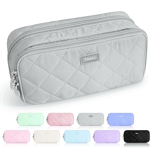 Extra Big Capacity: This organized pencil case provides ample room to store up to 110+ pens or other essentials like pencils, highlighters, erasers, and small staplers, even a calculator. Boasting a spacious capacity of L 9 x W 3.5 x H 4.3 inches. Age of Application: 3 yrs+. Multiple Compartments for Easy Storage: the special pencil pouch has multiple compartments. 1x main compartment (2 baffles divide it into 3 sections), 5x small pockets, 1x elastic pen loop. The front zip pocket contains 5x elastic pen loops, 1x mesh pocket. Provides enough space for your school supplies, makeup, sewing supplies or 3C supplies. Wide Opening & Portable Detachable Handle: The wide opening allows for easy visibility and quick access to your items. The easy grip handle makes it easy to carry your essentials wherever you go. Adorable Soft Quilted Design: This pencil pouch cute features a cute and charming design. The soft quilted fabric provides a cozy feel. Its stylish quilted pattern adds a visually appealing texture, making it a fashionable accessory for girls. Premium Material and Heavy-duty Zipper: Crafted from soft touch materials, this pencil bag cute offers a pleasant touch. The long-lasting quilted fabric and sturdy double zipper ensure durability and secure closure.