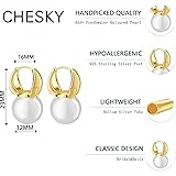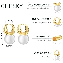 ⚪ Dainty Pearl: Our earrings feature AAA+ grade freshwater cultured pearls and are designed for easy wear.The natural beauty of drop pearls is truly showcased in our classic gold pearl hoop earrings. 💗 High-quality: These Elegant Earrings Are Made of Hypoallergenic, Lead-Free, and Nickel-Free Sterling Silver with 14k Gold Plating. They Feature Trendy Pearl Dangle Studs and Are Comfortable to Wear. 💿 Perfect Size: Hoops for Pearl Earrings Are 23mm Long When Linked Together, with A 16mm Outside Diameter and 12mm Pearl Diameter. They Are Lightweight and Perfect for Everyday Wear.1 pair. 💟 Best Gifts: Pearl Earrings Are A Lovely Gift for Special Occasions. They're Perfect for Weddings, Birthdays, Mother's Day, Christmas, And More. Give Them to Friends, Wives, Daughters, Brides or Mothers for An Elegant And Dainty Accessory 📣 CHESKY Jewelry: We Have Our Jewelry Factory and Take Great Care to Ensure That Every Piece Shines and Won't Tarnish with Wear and Tear