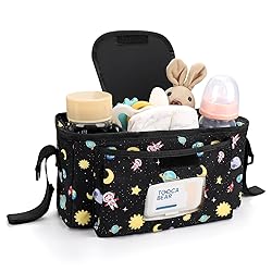 - Universal Stroller Organizer with Insulated Cup Holder and Shoulder Strap Features: 1. Universal: This stroller bag is compatible with most strollers on the market. 2. Multipurpose: It can be used as a baby stroller cup holder attachment or as a mom's shoulder bag, very suitable for going out. 3. Scientific storage compartment design keeps everything in order. 4. Our stroller organizer is a great stroller accessories / stroller caddy / stroller cup holder attachment. It can be a useful stroller cup holder organizer, stroller caddy organizer, universal stroller organizer, stroller organizer bag for Uppababy, Baby Jogger, Nuna, Doona strollers etc.