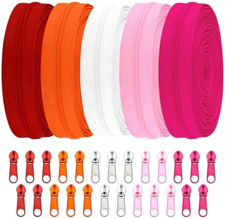 Sawoake 15 Yards Zipper - Bulk Sewing Zipper with 5 Colors, 25PCS Sliders for DIY Craft Bags