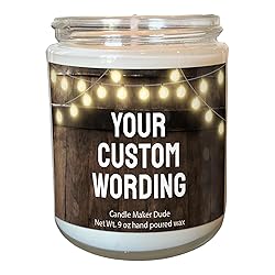Candle Maker Dude Custom Create Your Own Candle - Personalized 100% Soy Wax Scented Candle with Your Wording - Gift Idea (Wood Barrel & Lights)