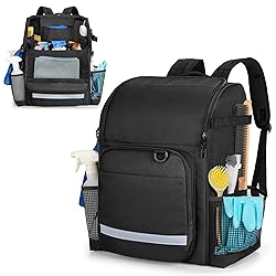 Large Capacity: The size is 12.7'' * 7.5'' * 17.5''; This housekeeping bag has a large compartment, including 11 multiple-function pockets for cleaning work Portable Caddy: Portable cleaning caddy bag has 2 thickened adjustable shoulder straps to carry which is easy to move around; Backpack has really been helpful in keeping everything together going out Easy to Assemble: The cleaning supplies carrier has 3 larger side pockets for wet rag or sponge wipes and includes a trash bag dispenser, key clip, and zipper pocket to make your work more efficient; Meanwhile, there is a front zipper pocket for other cleaning tools and an ID card pocket Design: The cleaning organizer with a thickened bottom pad for easy wipe without worrying about moisture, dirt, or unpleasant odors where you store cleaning products; The waist pad is designed with pearl cotton for more comfort Quality: Made of 600D nylon; This cleaning supplies case is suitable for cleaning work, such as housework, restaurants, and meeting rooms