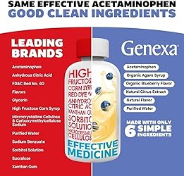 [Pain & Fever Reducer for Infants]: Genexa Infant Pain and Fever offers an effective solution for temporarily reducing fever and relief of minor aches and pains due to the common cold and flu, such as headache and sore throat [Pediatrician Preferred Ingredients]: Pediatricians were asked to select the ingredient profile they prefer for treating their own patients' pain and fever and picked Genexa's ingredients over the ingredients in the top-selling comparable products (FRC 2025) [Easy-to-Take Liquid Acetaminophen]: An infant-friendly, easy-to-administer liquid oral suspension that makes giving your baby the recommended dosage convenient and hassle-free. This infant acetaminophen features a delicious organic blueberry flavor babies love, helping parents ensure proper dosing without the struggle. The formula is dye-free, ibuprofen-free, and aspirin-free. [Ingredients Infants Want]: Genexa infant acetaminophen is made with the same effective acetaminophen as other brands but without artificial fillers or dyes. [Clean Medicine]: Genexa acetaminophen liquid oral suspension is made with the same effective active ingredient you need, and is free from artificial preservatives, artificial dyes, and common allergens, ensuring a clean medicine for your baby's pain and fever reduction.
