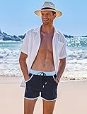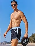 Quick Dry --- The men swim trunks consist of 95% Polyester and 5% Spandex, ultra quick dry fabric, super soft and skin-friendly, lightweight and comfortable. Just the right thickness, not heavy and not see thorough when wet, not stimulate to the skin when dry. Contrast Design --- With contrast of different colors of shorts, waistband design, and shorter length, the beach short creates an extra sense of fashion and better movement in your water sport. Double side pockets effectively storage wallet, key, cell phone or other small items. Elastic Waistband --- All of the swim shorts comes with elastic waistband and adjustable fit drawstring. The men's swimsuit has soft mesh lining inside, soft and elastic, comfortable and breathable, no tightness, leave no sand. Suitable Occasions --- The men fashion swimwear for a wide range of applications, suitable for beach vacatio, surfing, swimming, hiking, casual wear, ball sports, running, working out or other outdoor activities. This men's swim trunk is a good choice for summer. Warm Tips --- The men's quick dry bathing suits are easy to clean and can be machine washed. Hand wash doesn't exceed 40°. Don't be bleach. Please refer to our own SIZE CHART in the description below or picture in the left size pictures column.