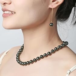 Material: Hand Knotted High-quality Glass Imitation pearls , Stainless-steel Necklace:1 pieces 16inch; Earrings: 1 pairs; Beads diameter :10mm ; Peacock Green LZMEI 10mm Faux Hand Knotted High-qualityGlass Imitation Pearls Necklace Earring Jewelry Set Varios colores for Women