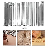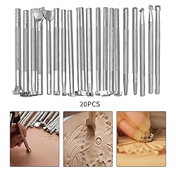 - Specification Information: Product Name: 20 Piece Leather Engraving Tool Set Material: Made of stainless steel, sturdy and durable, able to meet a variety of leather craft needs Package Include: 20 x Leather Engraving Tools (As shown in the picture) Design Features: This set contains 20 different patterns and unique and beautiful shapes, suitable for making a variety of exquisite leather products Each tool is uniquely designed to help you carve detailed patterns on leather and enhance the artistry of your work Specification: Handle diameter: approx. 8mm Overall length: approx. 110mm (4-21/64 inches) Instructions for Use: Wet the leather surface with a small amount of water Place the patterned surface vertically on the leather and gently tap it with a hammer You will get a beautiful engraved pattern