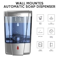 【Touchless Soap Dispenser 】- This hands free soap dispenser is made of durable ABS plastic material to provide long-lasting strength and use. The built-in smart infrared sensor soap dispenser, 0.2-second activation, will upgrade your hand washing experience. This wall hand dispenser can highly improve hygiene. 【600ml Capacity & Energy Efficient 】- This liquid soap dispenser has 20oz large capacity to reduce maintenance. Single out the liquid 0.8~1ml per activation to reduce waste. When it is getting close to needing a refill, you'll quickly see thanks to the transparent soap chamber. Locking design, equipped with a key, safety and suitable for commercial public places, such as schools, hotel, hospitals, airports, restaurants, kitchen, office, etc. 【Wall Mounted & Easy Install 】- This decorative wall mounted auto soap dispenser not only suitable for industrial also perfect for home bath kitchen. Wall soap dispenser can highly save the space and avoid mass bottles occupying the desk. This product works with most all-purpose brands of liquid soap, hands cleaner, kitchen dish soap, lotion and so on.( Not foaming soap ) 【Non-Drip Design】 - This dispenser uses smart infrared sensor, will not drip, leak or spill, so if you're looking for a tidy solution to help keep both hands and bathroom clean, you can not miss this dispenser.