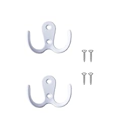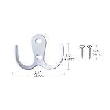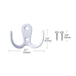 Double prong coat hooks are made of good quality zinc die-cast material, the screws are made of iron, sturdy and durable, and not easy to produce scratches. Double robe hooks measures 1.57 inches ( 40mm ) in height X 2.13 inches ( 54mm ) in length, each screw measures 0.55 inches ( 14mm ) in length X 0.12 inches ( 3mm ) in diameter. 2 metal dual coat hooks, and 4 matching metal screws; which is very neat and beautiful; sufficient quantity is enough for your daily use and replacement. Strongly enough to hold two or more items. Each coat hook with 2 screws, can easily hold up to 40 lbs of weight. These double prong hook is a good way to save your space. 2 metal dual coat hooks, and 4 matching metal screws; which is very neat and beautiful; sufficient quantity is enough for your daily use and replacement. Double prong coat hooks perfect for use in bathroom, bedroom, closet, foyer, entryway, fence hanging towels, coat, hats, purse, jackets, robe, backpacks. Add a decoration to your room.