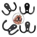 - 2 Pcs Double Prong Robe Hooks, Dual Coat Hooks Wall Mounted Hanging Clothes for Bathroom Bedroom Door Wall Retro Metal Cloth Hanger Double Coat Hooks With 4 Screws (Black)